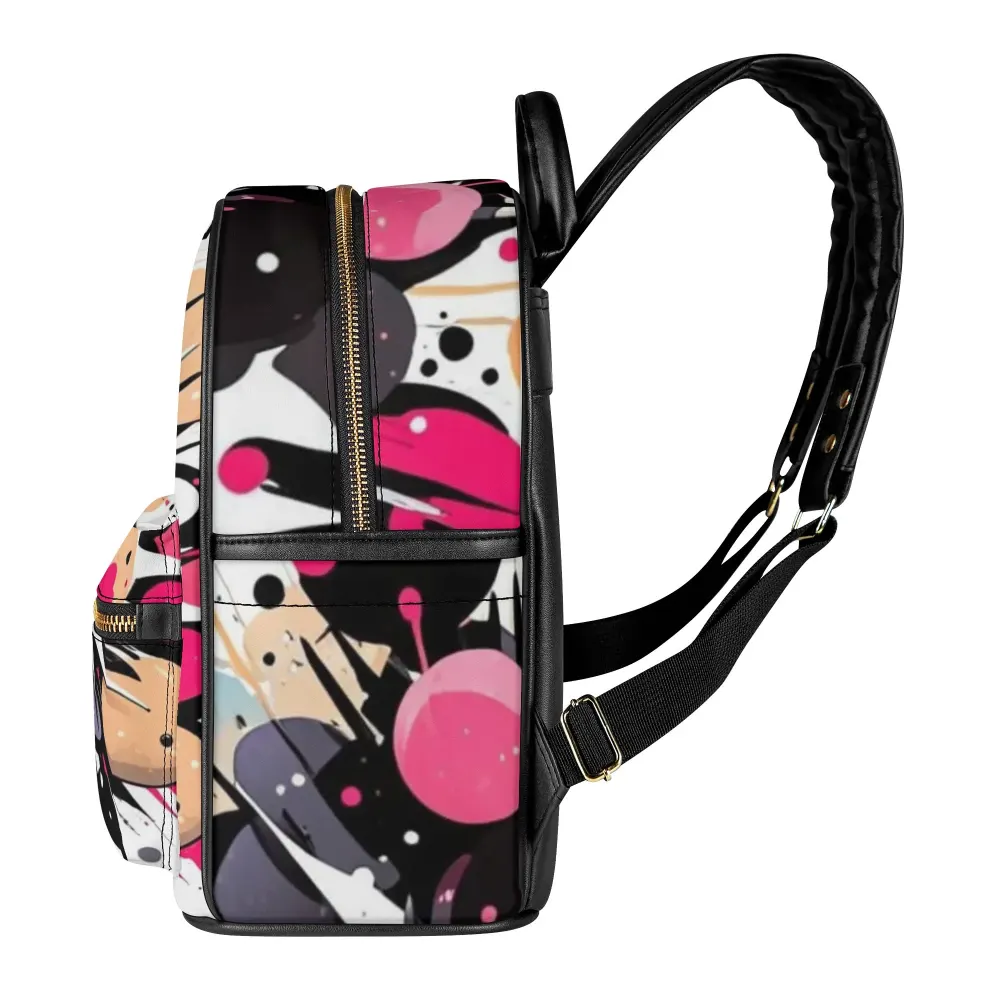 Elevate your everyday style with this Casual PU Leather Backpack, crafted from PU leather for durability. This versatile backpack features a metal zippered garment pocket, two side zipper pockets, and a spacious main compartment. Adjustable slide shoulder straps ensure a comfortable fit, while the front zippered pocket provides easy access to essentials like phone, keys, and trinkets.
